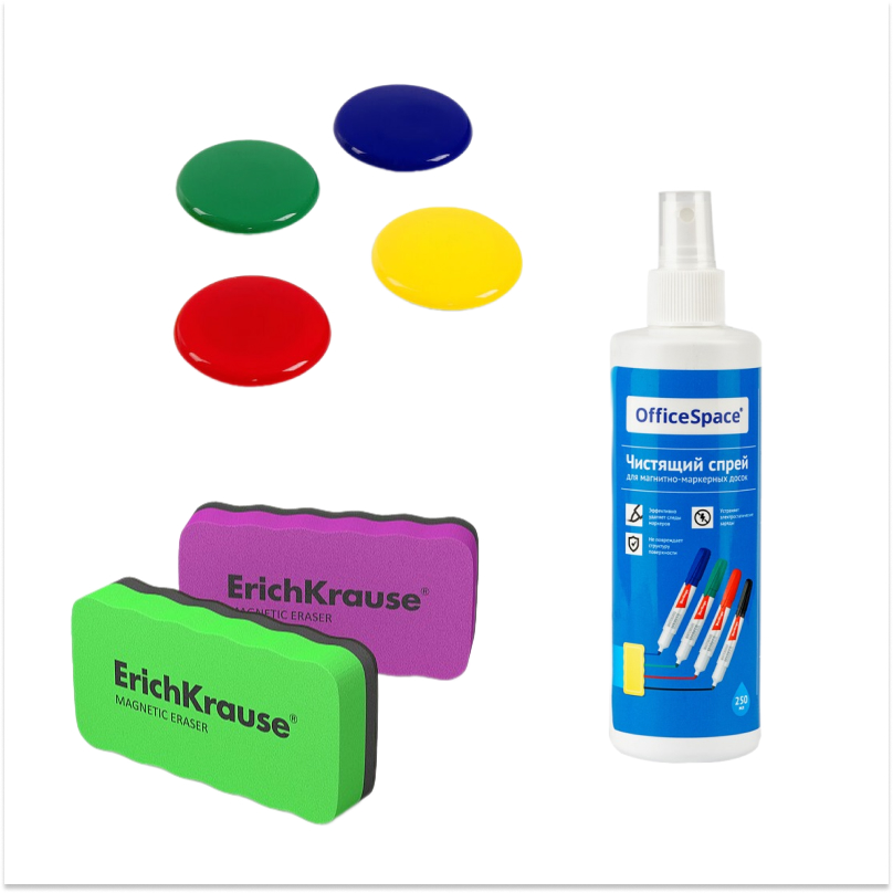 - Очистители для удаления следов от маркеров или других загрязнений. Это могут быть жидкости или спреи, которые наносятся на поверхность доски, а затем удаляются с помощью губки.