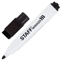 Маркер для доски черного цвета обладает круглым пластиковым корпусом диаметром 22 мм. Колпачок оснащен магнитом для крепления к любой металлической поверхности и губкой для быстрой корректировки текста во время написания. Наконечник круглой формы обеспечивает толщину линии письма 3 мм, что позволяет писать крупным шрифтом, который будет хорошо виден. Основа чернил - спиртовая. Чернила быстро высыхают и не оставляют разводов, легко стираются подушечкой, закрепленной на колпачке или специальным стирателем для магнитно-маркерных досок. Изделие не перезаправляются. Цвет колпачка соответствует цвету чернил.